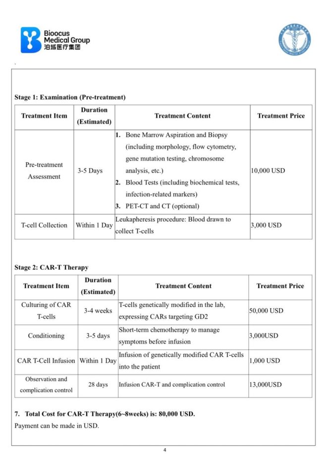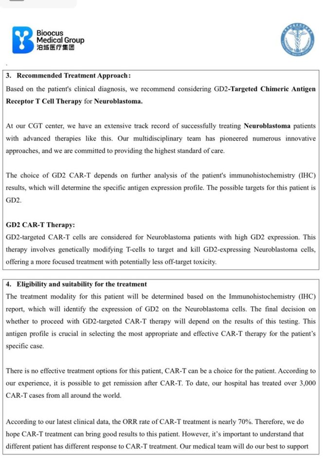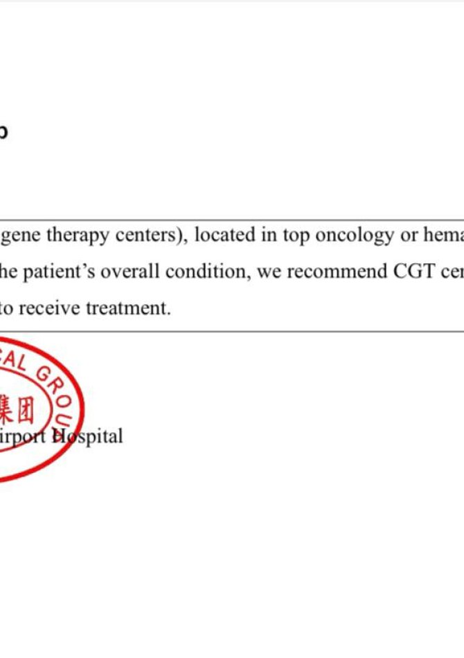 Требуется лечение GAR T- клеточной терапии GD 2 в больнице в Тяньцзине в Китае (Tianjin CancerHospital Airport Hospital).
